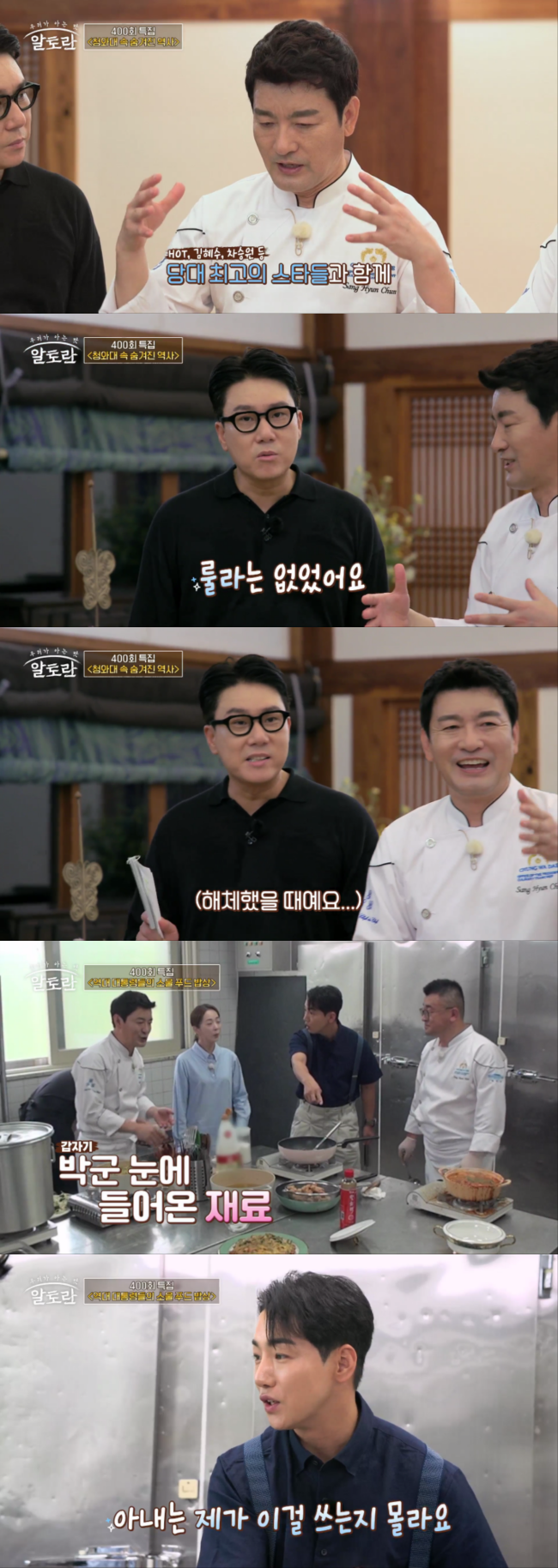 천상현 셰프는 의전 행사나 비공식 회의에 사용되던 장소인 상춘재에 얽힌 사연을 소개한다. 그는 “故 김대중 전 대통령 시절에 상춘재 앞 녹지원에서 행사가 있었다”며 “H.O.T, 김혜수, 차승원 등 당대 내로라하는 최고의 스타들과 함께 공익광고를 촬영했다. 그런데 룰라는 없었다”며 MC 이상민을 자극한다. 이에 이상민은 발끈하며 “오해하지 마시라. 그때는 이미 (룰라가) 해체하고 활동을 안 했을 때다”라고 거듭 강조해 웃음을 자아낸다.