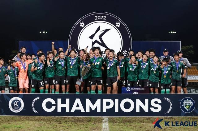 전북 U-15팀이 23일 저녁 7시 천안축구센터에서 벌어진 2022 GROUND.N K리그 유스 챔피언십 U-15 결승전에서 전남 드래곤즈 U-15팀(광양제철중)에 4-1로 대승했다. 전북 U-15팀은 후반 8분 이재현, 후반 17분 한기주, 후반 33분 유경현, 경기 종료 직전 한석진의 연속골에 힘입어 후반 19분 오하람이 한 골을 만들어 낸 전남 U-15팀을 제치고 대회 정상에 올랐다.