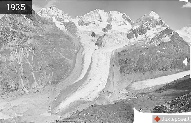 기후 변화로 스위스 빙하가 얼마나 사라졌는지를 사진 분석을 통해 도출한 연구 결과가 공개됐다. 22일(이하 현지시간) AFP통신은 스위스 연구진이 최초로 20세기 스위스 빙하의 표면 지형을 재현해 구체적인 손실 규모를 알아냈다고 보도했다.