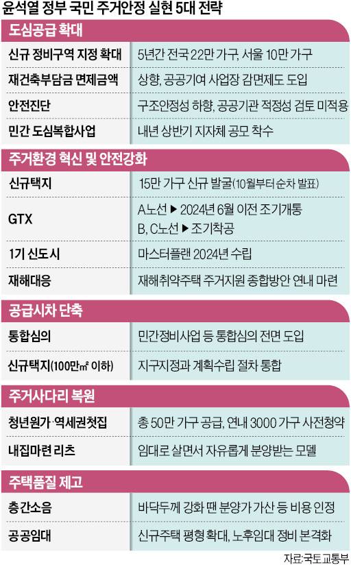 특히 민간의 재건축·재개발 등 정비사업을 활성화하는 데 무게 중심을 뒀다. 실제 공급 물량 270만 가구 중 약 68%를 민간에 맡기기로 했다. 내년부터 5년간 신규 정비구역 지정을 확대해 전국에 22만 가구 이상을 공급하기로 한 것만 봐도 알 수 있다. 서울에선 정비사업 기간을 단축하는 ‘신속통합기획’ 방식으로 10만 가구 이상을 확보할 계획이다.