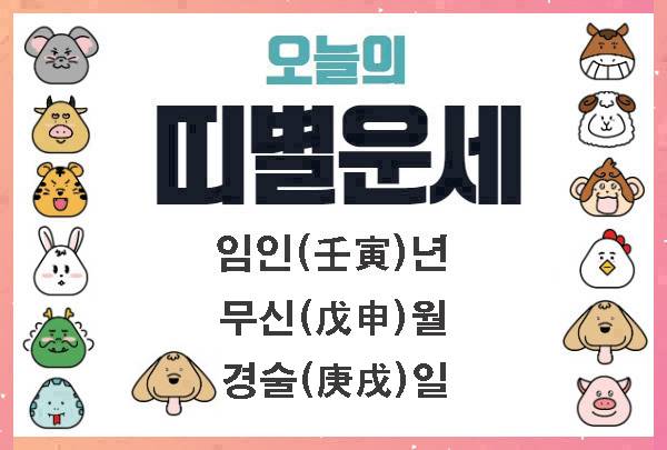 ① [오늘의 운세] 8월 25일(음력 7월 28일, 일진은 경술 庚戌) : 쥐띠(子) ~ 뱀띠(巳)