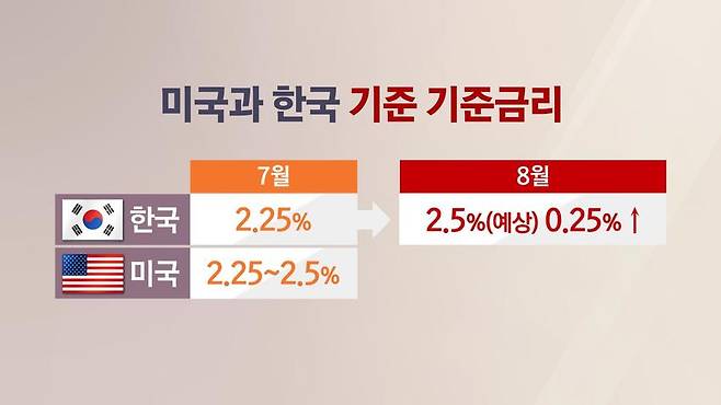 네, 지난달엔 0.5%포인트 올려 현재 연 2.25%가 됐는데요.