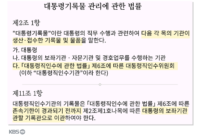 정부가 굳이 이런 '대통령기록물'을 분류한 취지는 뭘까요? 대통령기록이 그만큼 보존해야 할 가치가 높기 때문입니다. 그런 만큼 당연히 국가기관이 임의로 폐기처분할 수 없습니다.