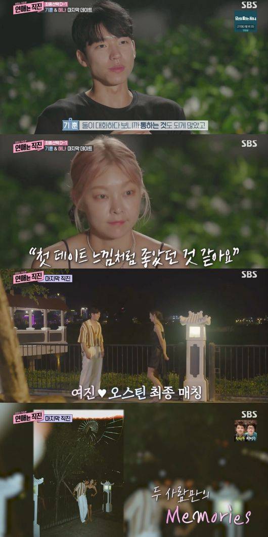반면 송해나는 뒤늦게 이기훈과 데이트를 가졌다. 공통점이 많은 두 사람은 대화가 끊임없이 이어졌고 서로의 연애스타일도 알아갔다. 송해나는 “오래 연애하는 스타일이고 6년 정도 만났다. 남자친구랑 싸울 일이 별로 없다. 특별히 화도 잘 내지 않는다. 소리내서 딱 한 번 화낸 적 있다. 바람폈을 때”라고 털어놨다. 이기훈 역시 연애를 오래하는 스타일이라고 밝혔고 두 사람은 서로 보듬어야 하는 연애 스타일이라고 밝혀 다시 한 번 공통점을 보였다.