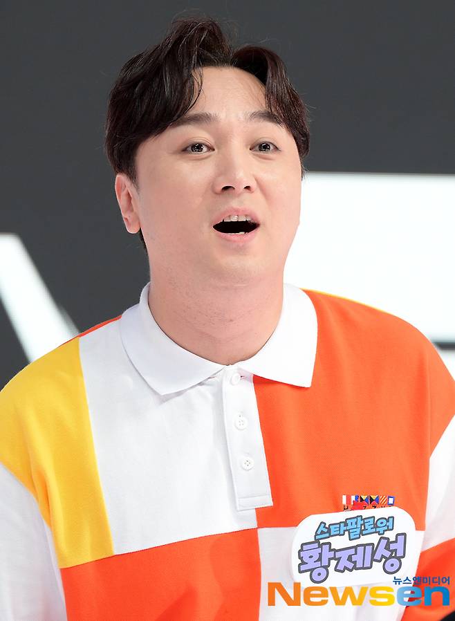 방송인 황제성이 8월 25일 오전 경기도 하남시 덕풍동 VA스튜디오에서 열린 국내 최초 메타버스 뮤직 서바이벌 '아바타싱어' 제작발표회에서 마무리 인사말을 하고 있다.