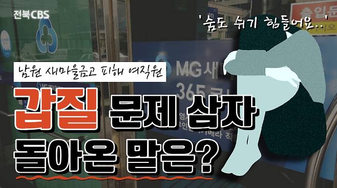 ◆ 박점규> 맞습니다. 이게 너무 속상해요. 용기를 내서 저희한테 제보해 주셨던 이 피해자분이 계속 다닐 수 있도록 정부와 그리고 행정안전부, 새마을금고중앙회 그리고 언론이 관심을 가져주셨으면 좋겠습니다.