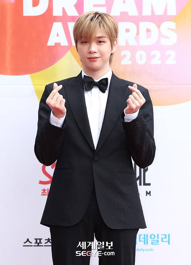 가수 강다니엘이 25일 오후 잠실종합운동장 학생체육관에서 열린 ’2022 K 글로벌 하트 드림 어워즈’의 레드카펫 행사에 참석해 포즈를 취하고 있다.