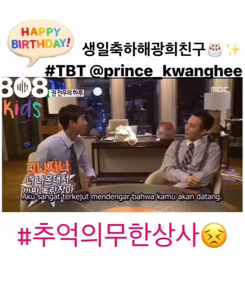 지드래곤은 25일 오후 자신의 인스타그램 스토리에 "생일 축하해 광희 친구 #추억의무한상사"라는 글과 함께 영상을 게재했다.