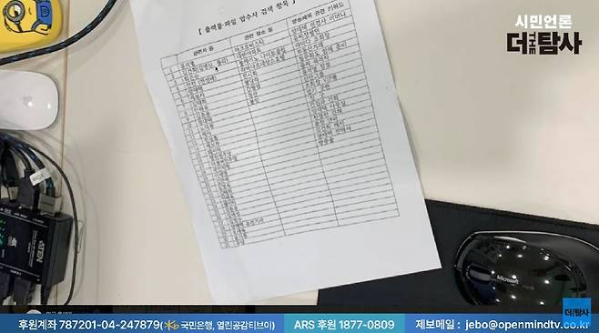 | ▲ <더 탐사>가 공개한 경찰의 압수수색 검색 항목. 김건희, 김명신, 쥴리 등이 포함돼 있다. |