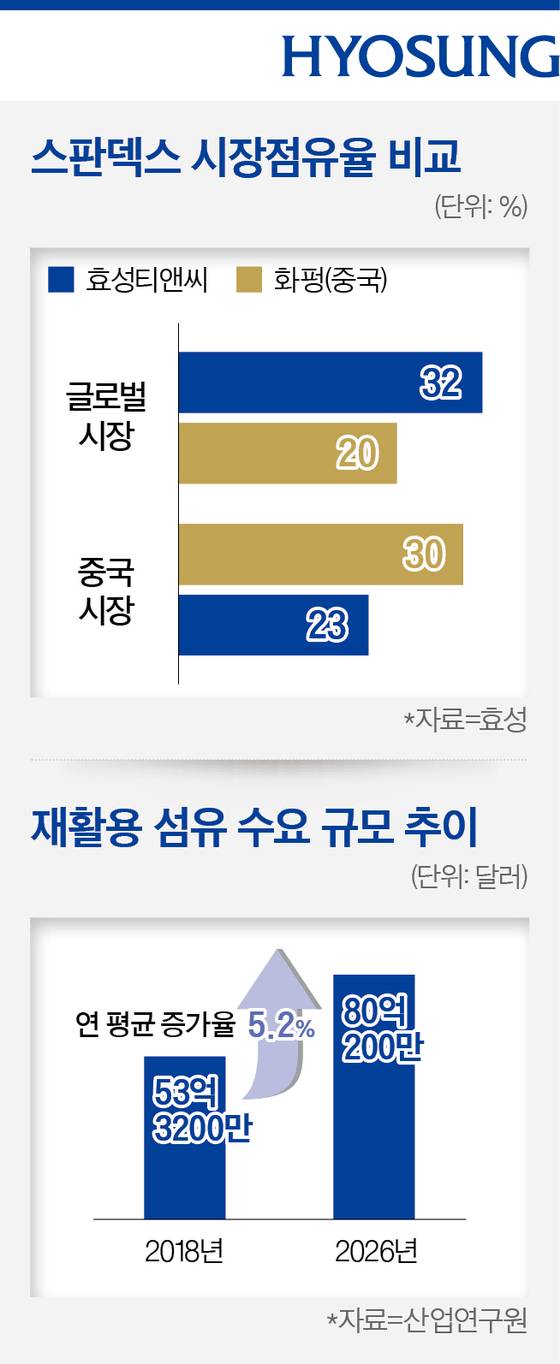 스판덱스 세계 1위 효성티앤씨, 중국 시장 겨냥 조현준의 친환경 승부수