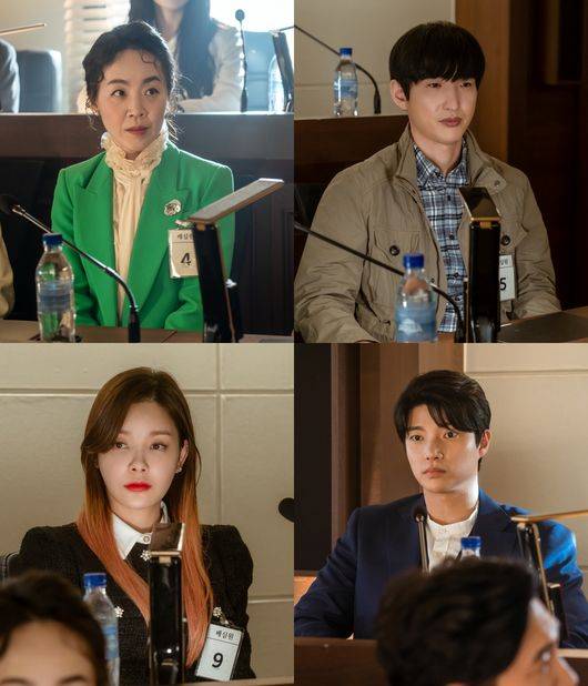 이런 가운데 연쇄살인범의 타깃이 된 배심원들의 모습이 담긴 스틸이 공개돼 눈길을 끈다. 초록색 의상과 강렬한 메이크업으로 존재감을 드러내는 응암동과 시종일관 굳은 표정의 안태호, 화려한 헤어스타일로 패션 감각을 뽐내는 염혜진과 또렷한 눈빛으로 법정 안의 상황을 주시하고 있는 찰스까지 다채로운 개성을 자랑하는 이들이 과연 어떤 방식으로 정체 모를 살인범에게 맞설지 배심원과의 첫 만남이 기다려지고 있다.