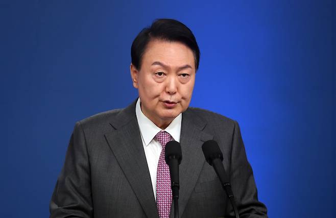 | ▲ 윤석열 대통령이 지난 17일 서울 용산 대통령실 청사에서 열린 취임 100일 기자회견 '대통령에게 듣는다'에서 그동안의 소회와 향후 정국 운영 방안 등을 밝히고 있다. |