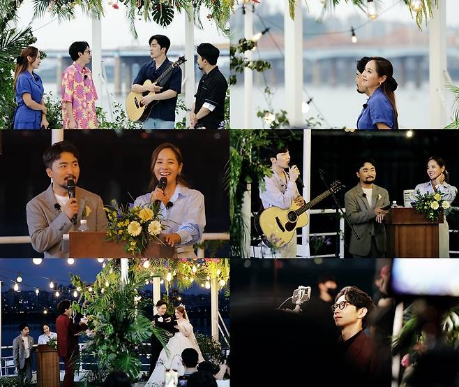깨볶단은 가수 적재 축가를 깜짝 선물한다. 적재는 10년의 무명을 겪고 있는 가수인 신랑의 사연을 듣고서 한걸음에 달려왔다고. 여름 밤 한강 위에서 펼쳐진 감미로운 축하 무대에 우크라이나-러시아에 있는 신부 가족들도 흐뭇해했다는 후문이다. (사진=SBS 제공)