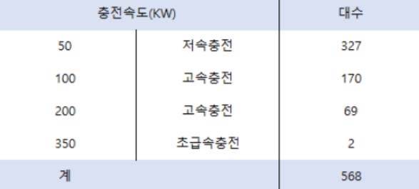 | ▲ 고속도로 휴게소 전기 충전기 현황(충전속도별) |