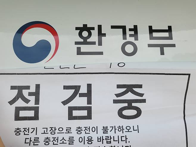 | ▲ 성주휴게소에 설치된 전기차 충전기. 고속도로 휴게소에 이미 설치된 충전시설도 전기인입 및 인허가 지연으로 몇달째 사용하지 못하고 있다. |