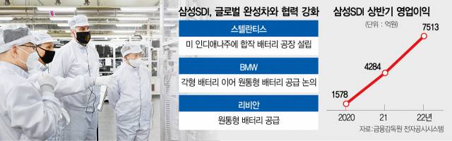 삼성SDI가 글로벌 완성차 업계와 배터리 협력을 강화하고 있다. 미국 3대 완성차 업체인 스텔란티스와 인디애나주 합작공장 설립에 나섰고 독일 BMW와는 각형 배터리에 이어 원통형 배터리를 공급하는 방안을 논의 중이다. 리비안을 비롯한 미국 전기차 스타트업에도 배터리를 납품하며 공급처를 다변화했다.