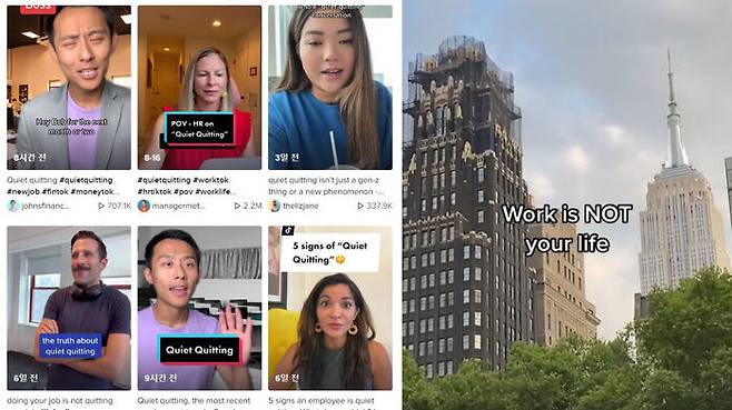 현지 시간으로 지난 24일 더힐, 워싱턴 포스트, CNN 등 외신들은 회사 일에 지친 젊은 직원들이 틱톡을 통해 직장과의 '조용한 사직'을 실행하는 것이 트렌드라고 보도했습니다.