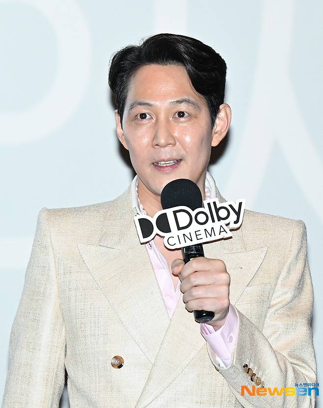 배우 이정재가 8월 27일 오후 서울 강남구 메가박스 코엑스에서 열린 영화 ‘헌트’ 무대인사에 참석하고 있다.