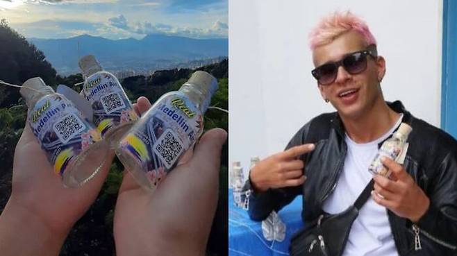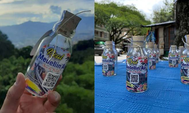 음악 활동을 안정적으로 더 이어가기 위한 비용이 필요했던 알바라도는 자신이 사는 지역 메데인의 맑은 공기를 병에 담아 팔고 있습니다.