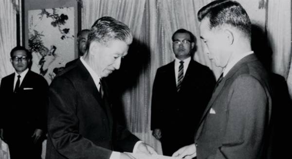 | ▲ 박정희 정권 당시 최장수 대법원장을 역임한 민복기. 두 사람이 함께 있는 모습. |