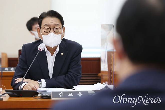 | ▲ 28일 국회에서 열린 행정안전위원회 전체회의에서 더불어민주당 간사인 김교흥 의원이 발언하고 있다. |