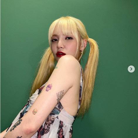 공개된 사진 속에는 아슬아슬하게 몸매를 가린 민소매와 짧은 미니스커트를 입고 귀여운 포즈로 카메라 앞에서 포즈를 취한 지민의 모습. 이때 그의 팔에 새겨진 다양한 타투가 시선을 사로잡는다.