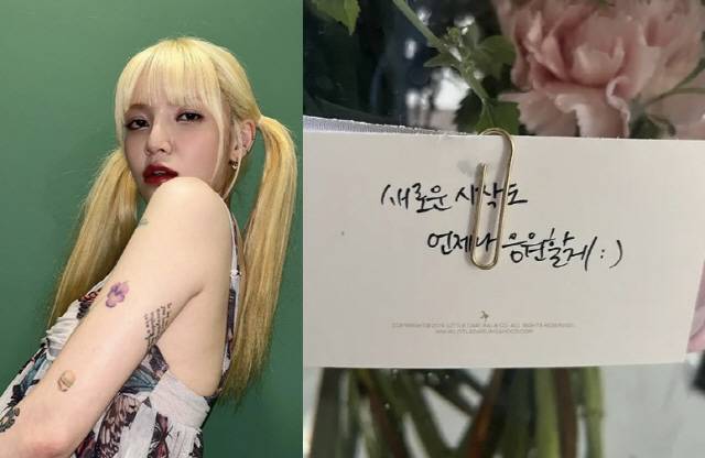 함께 공개된 사진에는 '새로운 시작도 언제나 응원할게'라는 문구가 적힌 꽃다발이 담겨 눈길을 끌었다.