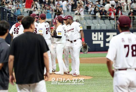 2022 KBO리그 프로야구 키움히어로즈와 롯데자이언츠의 경기가 30일 오후 서울 고척스카이돔에서 열렸다. 6대 5로 승리, 경기를 마친 키움선수들이 자축하고 있다.