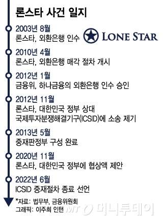 ISDS란 외국 투자자가 상대방 국가의 법령이나 정책 등에 따라 이익을 침해 당했을 때 국제법에 따라 해당 국가를 상대로 ICSID 등 국제 중재기관에 중재를 신청할 수 있게 한 제도다. 론스타는 2003년 외환은행을 1조3834억원에 사들였다가 2012년 하나금융지주에 3조9157억원에 매각한 뒤 한국 정부의 매각 승인 지연으로 매각 가격이 내려가 손해를 입었다며 그 해 11월 46억7950만달러(약 6조3136억원) 규모의 ISDS 소송을 제기했다.