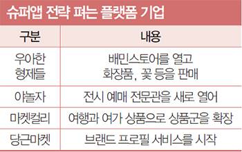 배달의민족을 운영하는 우아한형제들은 배민스토어를 열고 화장품, 꽃 등을 판매하기 시작했다. 여기에 의류, 편의점 상품도 입점시켰다. 여가 플랫폼 야놀자는 전시 예매 전문관을 새로 열었다. 신선식품을 판매하던 마켓컬리는 여행과 여가 상품으로 상품군을 확장했다. 당근마켓은 브랜드 프로필 서비스를 시작하며 대형 프랜차이즈 광고까지 시작했다. 그러나 여러 플랫폼의 이런 슈퍼앱 전략은 의도했던 효과를 달성하지 못하는 모습이다.
