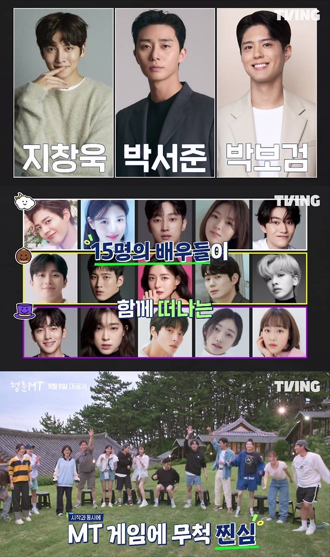 티빙 오리지널 '청춘MT'가 오는 9월 9일 첫 공개된다. '청춘MT'에 출연하는 '구르미 그린 달빛', '이태원 클라쓰', '안나라수마나라' 세 팀의 배우들이 직접 각 팀의 매력 포인트를 밝혔다. 또한, 이들의 케미스트리를 미리 볼 수 있는 60초 티저도 공개됐다.