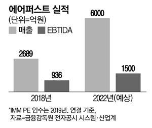 1일 투자은행(IB)과 산업계에 따르면 에어퍼스트는 올해 6000억원 이상의 매출을 올릴 것으로 관측된다. 이는 지난해 매출 4006억원에서 50% 오른 수치이며, IMM PE가 인수하기 직전인 2018년(2689억원) 대비 2배 이상 증가한 것이다. 상각전영업이익(EBITDA) 역시 2018년 936억원에서 지난해 1324억원으로 올랐으며, 올해는 1500억원 돌파가 유력시된다.