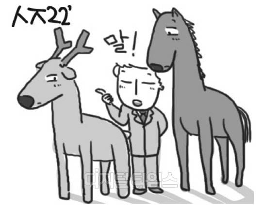 가리킬 지, 사슴 록, 위할 위, 말 마. 지록위마. 사슴을 가리켜 말이라 한다는 의미다. 윗사람의 눈귀를 가리고 권세를 휘두르는 경우를 일컫는다. 여우가 호랑이의 위세를 빌려 행세한다는 호가호위(狐假虎威)와 비슷한 말이다. 아닌 것을 맞다고 우기는 경우에도 쓴다. 중국 진(秦)나라 때 환관 조고(趙高)의 권력 농락에서 유래했다.