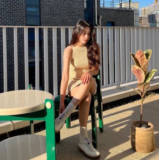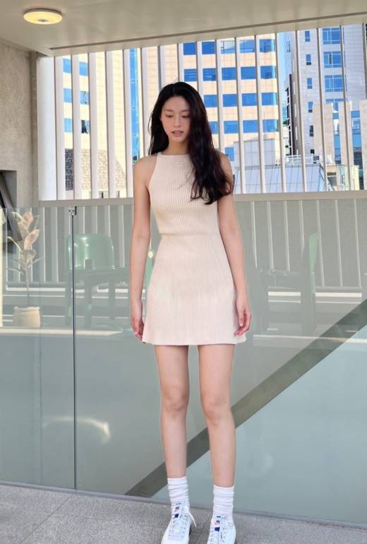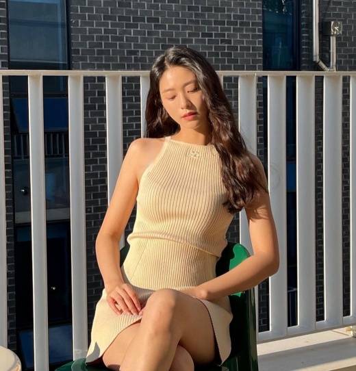 공개된 사진에는 야외 테라스에 앉은 설현 모습이 담겼다. 그는 홀터넥 니트 원피스를 입고 군살 없는 각선미를 자랑했다. 잘록한 허리는 물론 젓가락처럼 긴 다리가 네티즌의 다이어트 욕구를 자극한다.