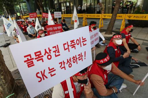 대리운전 총 연합회는 지난 23일부터 SK그룹 본사앞에서 점심시간 대 게릴라 시위를 계속 벌이고 있고, 어제(1일)는 소상공인연합회 등 시민 사회단체 관계자 등 200여명 이상이 집결해 규탄대회를 벌였는데요.