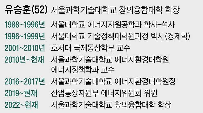 이 의문을 갖고 지난 8월 29일 오후 3시 서울시 노원구 공릉로 232 번지 서울과학기술대학교 창조관 504호 유승훈 창의융합대학 학장의 연구실을 찾았다. 유 학장은 34년째 에너지 정책을 연구하고 있다. 산업통상자원부 산하 에너지위원회 위원, ‘10차 전력수급 기본계획’ 총괄분과 위원장을 맡고 있기도 하다.