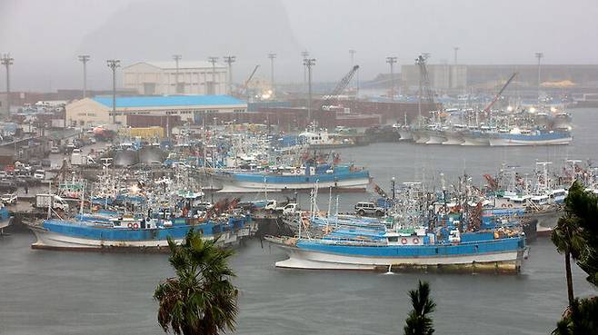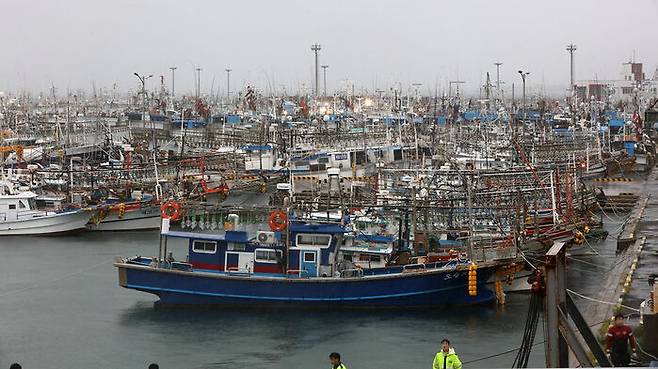 태풍 '힌남노' 피해 항구에 정박한 어선들