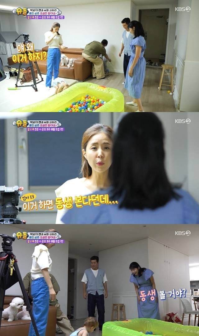 9월 2일 방송된 KBS 2TV 예능 '슈퍼맨이 돌아왔다'(이하 '슈돌') 445회에서는 코요태 김종민, 신지, 빽가가 외출한 사유리를 대신해 21개월 젠 육아에 도전했다.