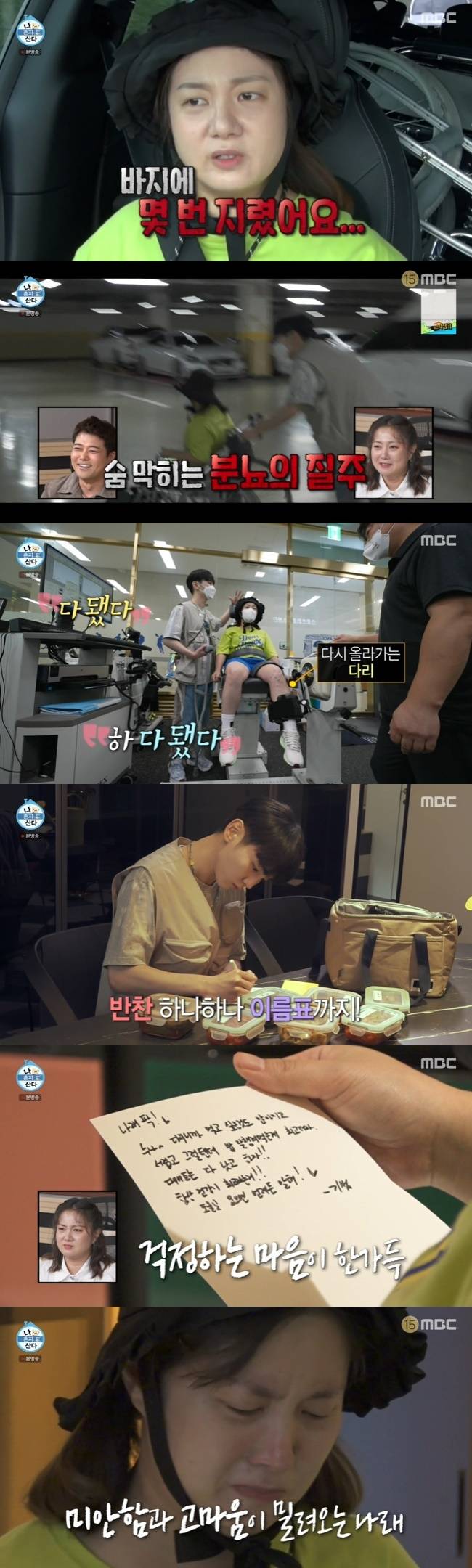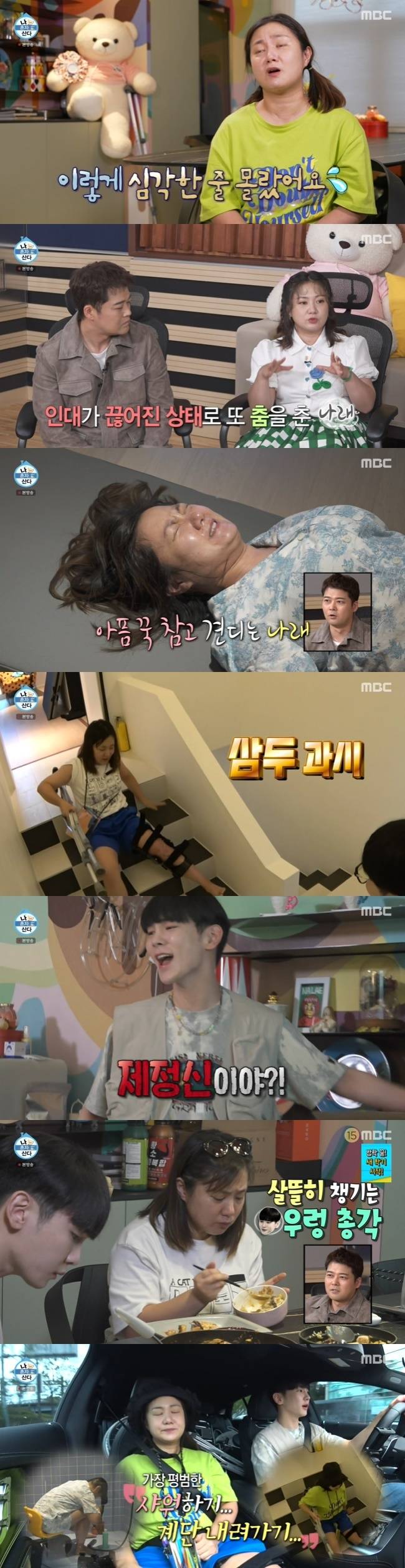 수술을 받은 지 14일째였던 박나래는 퉁퉁 부은 다리를 힘겹게 움직였고, 양말 신는 것조차 마음대로 되지 않았다. 겨우 방을 나온 박나래는 매트를 꺼내 무릎 굽히기 운동을 시작했고, 땀 범벅이 될 정도로 고통스러워 했다.
