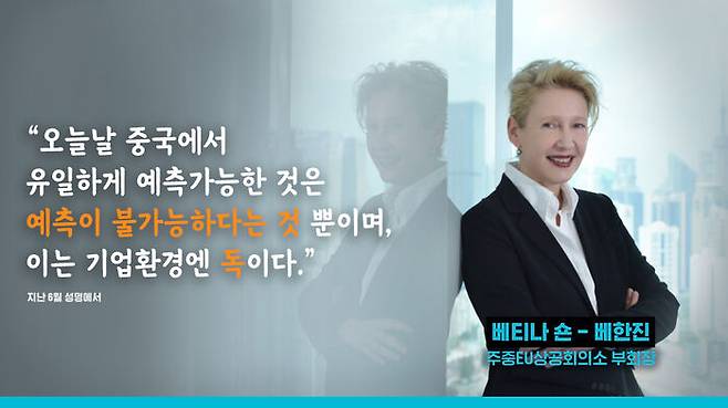 중국주재 유럽연합(EU)상공회의소의 지난 6월 조사결과, 23%의 기업들은 사업조직을 중국 밖으로 옮기는 방안을 고려하고 있다고 답했다. 응답기업의 50%는 2021년 이후 중국내 사업환경이 그 전에 비해 더욱 정치적 영향에 휘둘린다고 했다. 이는 2019년의 같은 조사 때와는 매우 다른 양상이다. 당시 응답 기업들은 "중국시장의 활기와 성숙도에 대해 점점 굳건한 확신을 하게 된다"는 등의 답을 많이 했다. 주중 EU상의 부회장인 베티나 숀-베한진은 설문 조사결과와 함께 내놓은 성명에서 "오늘날 중국에서 유일하게 예측가능한 것은 예측이 불가능하다는 것 뿐이며, 이는 기업환경엔 독이다."라고 일갈했다.