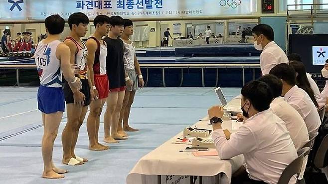 지난해 도쿄올림픽 남자 도마에서 금메달을 목에 건 신재환(24·제천시청)은 음주 폭행 사건에 따른 자숙 차원에서 선발전에 나오지 않았습니다.