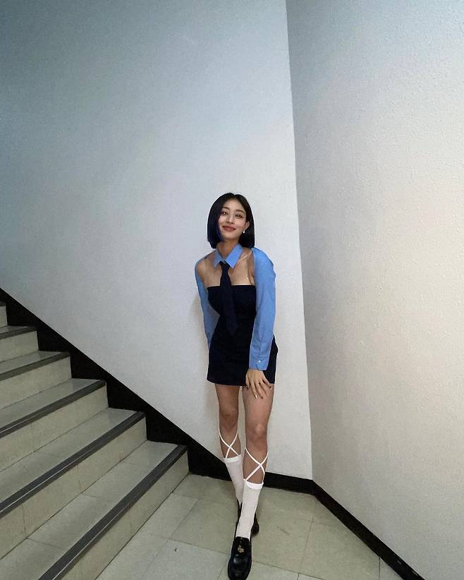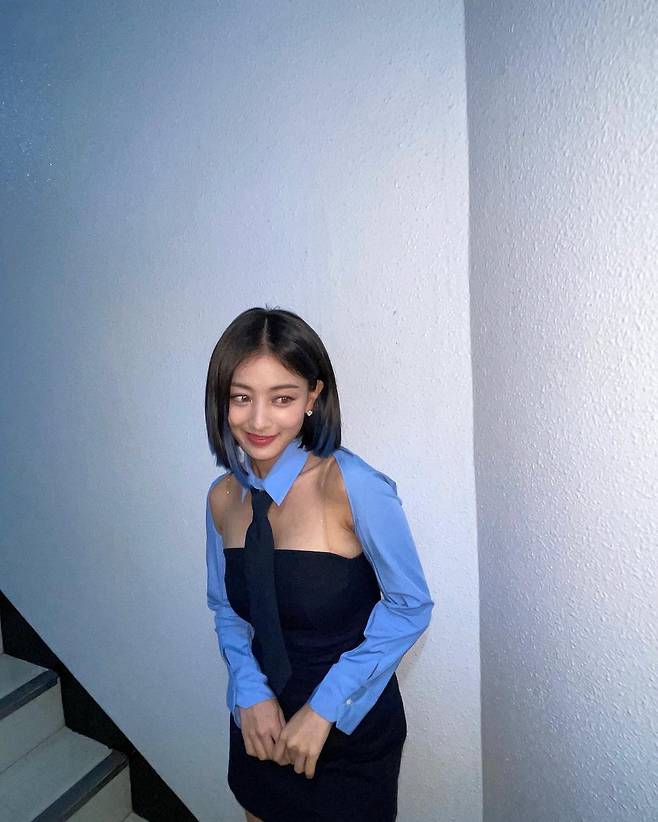 사진 속 지효는 무대 의상을 입고 다양한 포즈를 취하고 있다. 이 모습은 러블리하면서도 섹시미 가득했다. 큰 눈망울 등 아름다운 미모를 자랑, 여기에 애교 가득한 표정으로 사랑스러운 매력을 뽐내고 있는 지효. 의상은 섹시미 가득했다. 이날 지효는 가슴라인이 뚫린 셔츠에 튜브톱 미니 원피스를 매치한 스타일을 선보였다. 이에 고스란히 드러난 지효의 볼륨감 넘치는 몸매와 늘씬한 각선미는 시선을 단번에 끌었다.