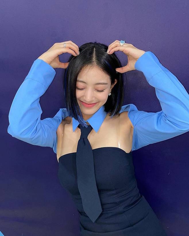 트와이스 지효의 볼륨감 넘치는 몸매에 시선이 집중됐다.