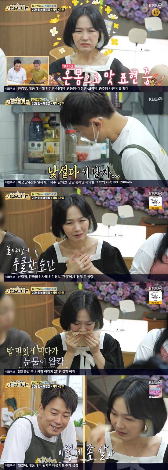 자두는 김준현에게 "입에 들어가는 게 오빠가 만든 음식이라는게 믿기지 않는다"고 감탄했다. 이날 자두는 '자본주의학교' 출연진에게 강두가 간절함이 보였다는 이야기를 들었다.
