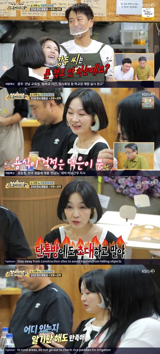 이날 '자본주의식당'에는 특별 손님으로 가수 자두가 출연했다. 자두는 강두와 함께 혼성그룹 '더 자두'로 활동한 바 있다.