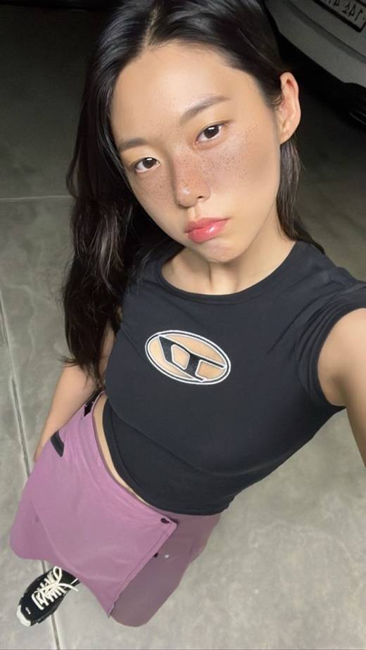 공개된 사진 속 설현은 팔을 높게 들어올린 채 셀카를 찍고 있다. 설현은 어플 효과로 얼굴에 주근깨가 잔뜩 생긴 모습이다. 입술을 뾰로통 내밀고 있는 설현의 표정이 귀여움을 유발한다. 그런 가운데 밀착 크롭 티셔츠를 입고 드러난 설현의 잘록한 허리와 볼륨감이 눈에 띈다.