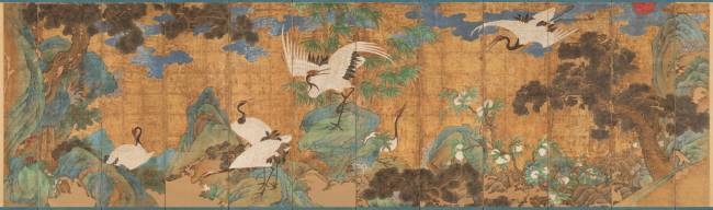 미국 데이턴미술관(Dayton Art Institute)이 소장하고 있는 ‘해학반도도(海鶴蟠桃圖·사진)’는 장수(長壽)와 상서(祥瑞)를 상징하는 학, 복숭아, 바다를 그린 그림이다. 작은 금박 수백 개를 이어붙여 배경을 조성한 까닭에 그 화려함이 실로 대단하다. 7m가 넘는 너비와 순금 재료를 고려할 때 20세기 초 조선 왕실에서 조성한 것으로 추정되나, 1930년대 이전에 이미 미국으로 반출됐음이 확인된다.