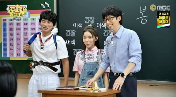 돌아온 <놀면 뭐하니?>가 첫 번째 아이템으로 선보인 건, 시골 학교로 오게 된 유봉두(유재석)가 학생들과 수업을 하는 상황극이다. 새로 서울에서 왔다는 설정으로 이이경, 박진주가 반에 들어왔고, 그들과 유봉두가 나누는 다소 뻔한 상황극이 펼쳐졌다. 유봉두는 다소 낯설어하는 이이경과 박진주에게 예능 판이 그리 호락호락하지 않다며 정신교육(?), 체력단련을 하는 모습을 보였다.