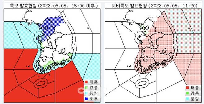 기상청은 5일 오전 11시 태풍 힌남노 현황 및 전망 브리핑을 통해 이같은 당부를 전했다.