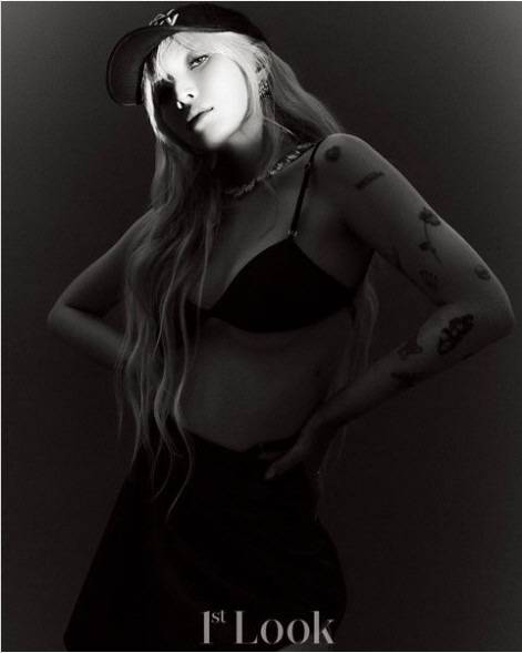 사진 속에는 한 매거진과 화보 촬영을 한 지민의 모습. 지민은 아슬아슬하게 연결된 브라를 입고 포즈를 취했다. 이때 과감하게 드러낸 지민의 몸매와 팔과 등에 선명한 타투가 시선을 모았다.
